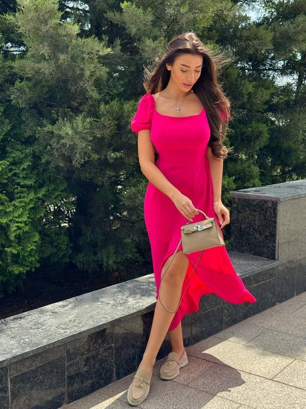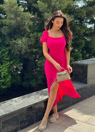 Максі сукня з розрізом на нозі та короткими рукавами