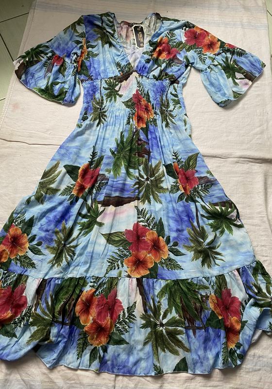 Красивое длинное летнее платье 100%вискоза Длина 121 см пог 54см пот 36-44сы ( резинка ) Бедра любимые Новое