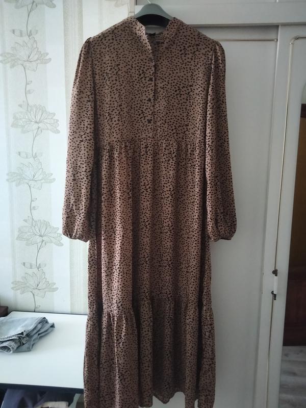 Платье макси, в пол, актуального цвета в этом сезоне, с анималистичным принтом. Размер указан L (40/42), но может идти и на XL, XXL. ПОГ - 57, плечи - 41, талия (немного завышена) - 63, бедра - свободно, длина - 136, длина рукава - 65