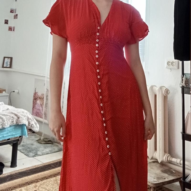 Летнее платье красное в горошек для прогулянок
