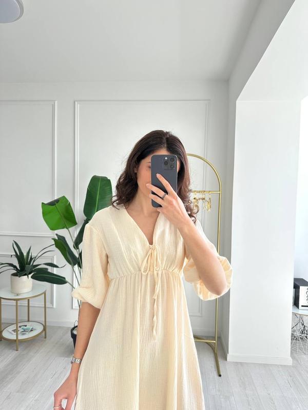 Фото Реал🤩 Новинка ❤️ Сукня😍 Цвета: светлый беж, розовый, масло, темно-синий Ткань: муслин Размер: 42-44, 46-48 Цена: 999 грн🔥