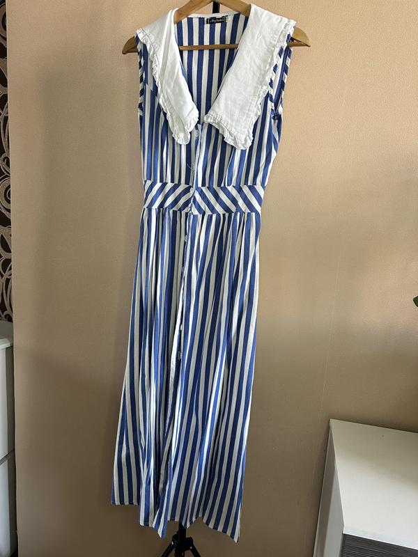 Жіноча довга сукня в синю смужку Розмір S-M На ґудзиках Є кишені