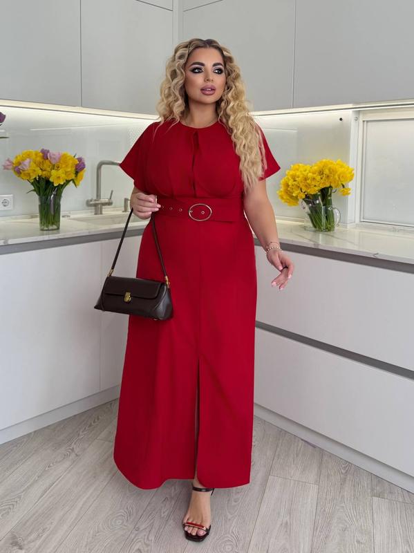 ✅✅✅ НОВИНКА, платье с поясом ✅✅✅ Платье с поясом Модель 1047vl Размеры : 46-48,50-52,54-56,58-60 Цвета: красный Тканина : софт Платье интересного кроя : на груди складки, подчеркивает грудь и привлекает внимание. Широкий пояс подчеркивает талию (в цвет платья). Платье от талии клеш, по центру разрез Замеры ИСПОЛЬЗУ (поглянитесь на размерную таблицу): Размер 46-48 Объем груди 100 Объем талии 80 Объем бёдер 104 Длина рукава от горловины 32 Длина по спинке 136 Размер 50-52 Объем груди 110 Объем талии 88 Обʼєм стегон 116 Длина рукава от горловины 33 Длина по спинке 137 Размер 54-56 Объем груди 120 Объем талии 94 Объем бёдер 122 Длина рукава от горловины 34 Длина по спинке 139 Размер 58-60 Объем груди 130 Объем талии 100 Объем бёдер 136 Длина рукава от горловины 35.5 Длина по спинке 141 ВЛ