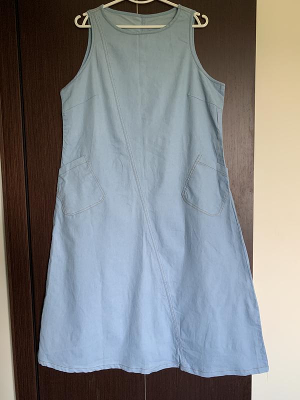Длинное натуральное платье-трапеция из коттона (размер 16/44-18/46) Красивого голубого цвета. Удобный, комфортный минималистичный крой, Размер 16/44-18/46. П. о. грудь 57 П. о. стегон 62 П. О. талии 57 Длина платья 120 ● Обмену и возврату нет, перед заказом проверяйте все измерения. По запросу делаем дополнительные фото. ● Оплата на карту Приватбанка 100% суми. Наложенного платежа нет. С Безопасной оплатой НЕ РАБОТАЮЩИМ. ● Отправка Новой или Укр-почтой.