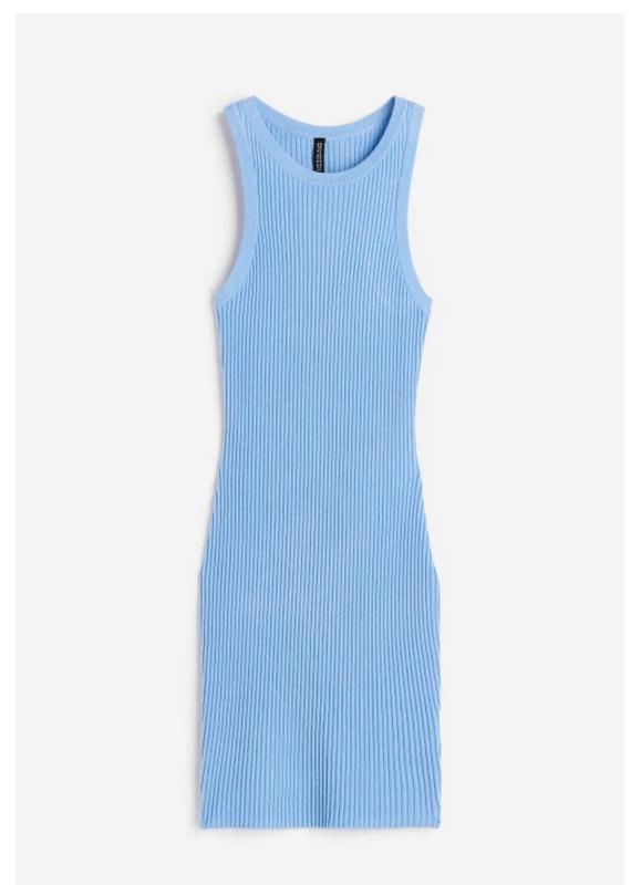 Коротка сукня в рубчик, розмір S-M. Стан гарний. Колір блакитний. Має виріз на спинці а-ля «алкоголічка»
