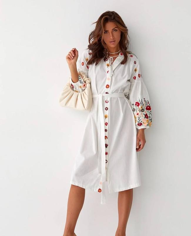 Вышитое платье Размеры: S, M, L Ткань: лен с хлопком Цвета: белый, черный Замеры по изделию: S: ОГ 104 см, ОТ 108 см, ОБ 114 см Длина 108 см Длина рукава от горловины 59 см М: ОГ 106 см, ОТ 110 см, ОБ 116 см Длина 109 см Длина рукава от горловины 60 см L: ОГ 108 см, ОТ 112 см, ОБ 118 см Длина 110 см Длина рукава от горловины 61 см Цена: 1400 грн