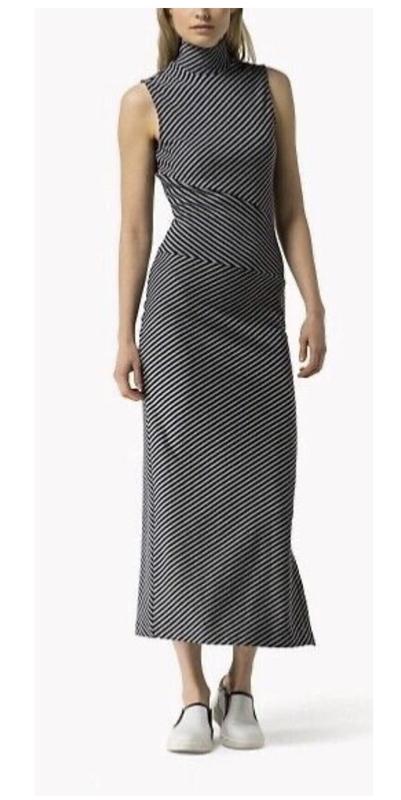 Сукня в колаборації GiGi Hadid & Tommy Hilfiger в розмірі S. Стан гарний, але присутні ковтунці. Красиво сідає по фігурі. Комір стійка. Бірка зі складом зрізана. Сукня без підкладки, з щільної тканини, сідає по фігурі. Довжина загальна 133, плечі 31, пог 39, пот 35
