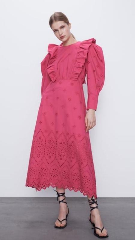 Красивое платье из прошвы малинового цвета,100% коттон,размер S.Замеры дам по запросу.