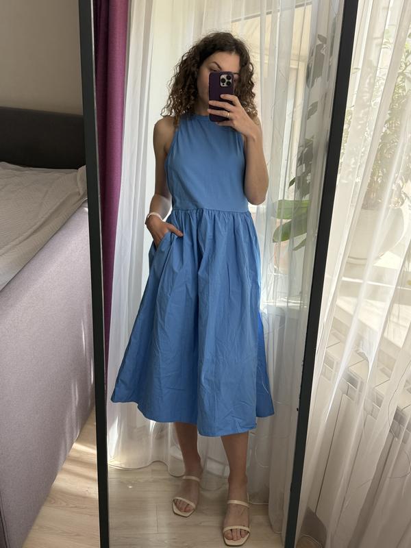 Звертаю вашу увагу, що замовлення з 20 червня по 6 липня, не приймаю. Нова сукня неймовірного блакитного кольору від George в 14 розмірі. Сукня натурального складу, верх зроблений майкою, сукня зі зручними карманами, на літо супер і під каблук і під кеди. Заміри: Довжина по спинці 120 см. Пів обхват груди: 45 см Пів обхват талія: 41 см Пів обхват стегна: 80 см На фото мій зріст 178 см.
