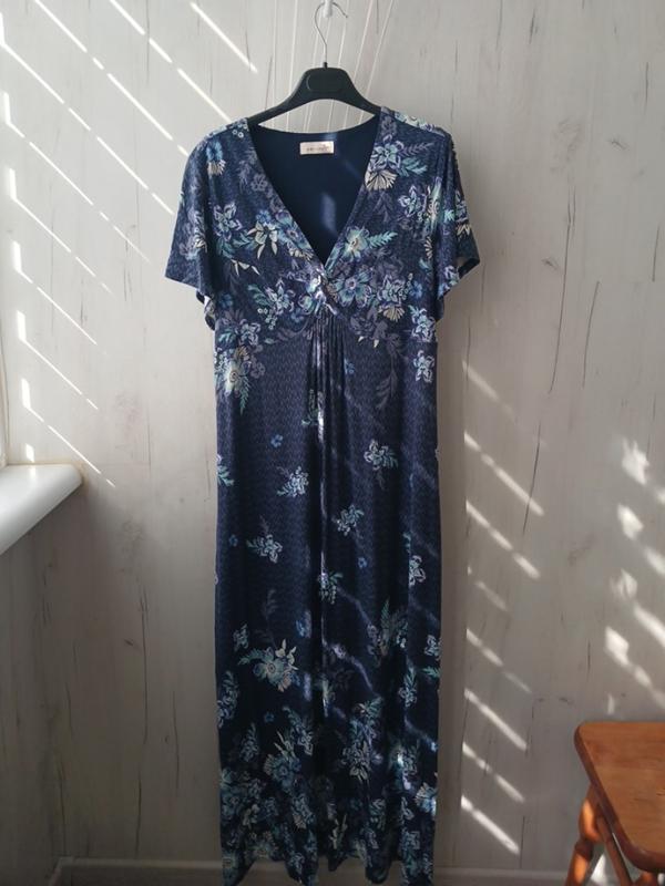 Летнее, вискозное платье,длина 138 см, поб 64, пог 54, ткань имеет растяжимость.