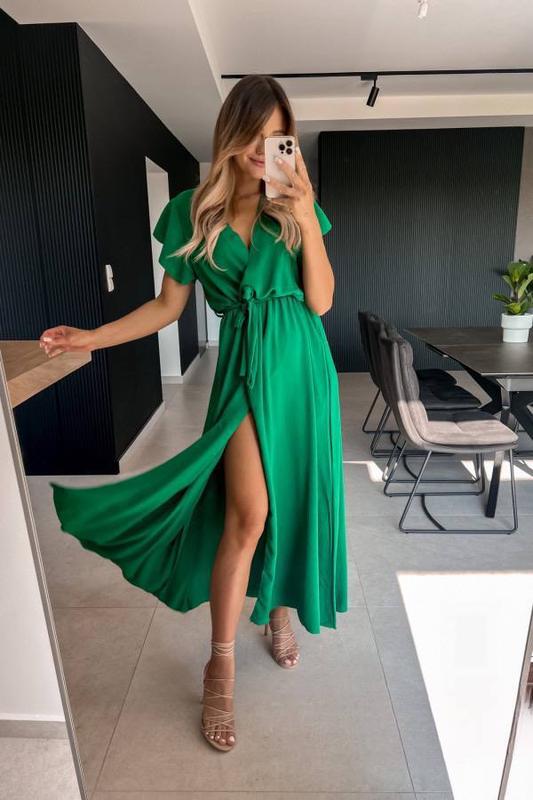 Сукня 🔹Мод: 079 🔹Размер: 42-46 (универсал) 🔹Цвета: черный, малина, зеленый, пудра 🔹Тканина: креп-жатка Платье идет с резинкой на талии, запах - обманка, что позволит не поправлять платье, а наслаждаться комфортным ношением🥰 Длина 140 см. Груди до 100 см. Создано с вдохновением❤️