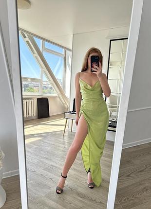 сукня з розрізом на стегні і вирізом-хомутиком з паєтками
