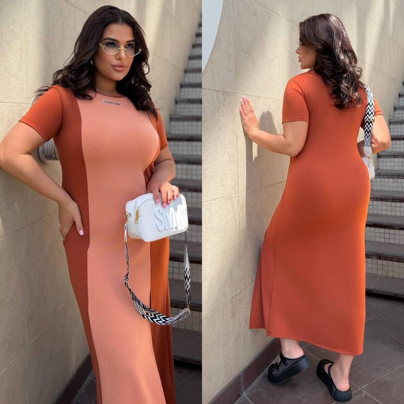 ✨Модель 4413 15580 ✨Размер:42-44,46-48,50-52,54-56 ✨Ткань:двонитка (приемная,эластичная, практичная) ✨Цвет:ментол,теракот, слива, мягко ✨Платье длины макси с контрастными вставками, короткими рукавами и разрезом спереди. Замеры: Размер 42-44 ог-86,ос-94,длина-130 Размер 46-48 ог-92,ос-100,длина-130 Размер 50-52 ог-100,ос-110,длина-135 Размер 54-56 ог-106,ос-114,длина-138