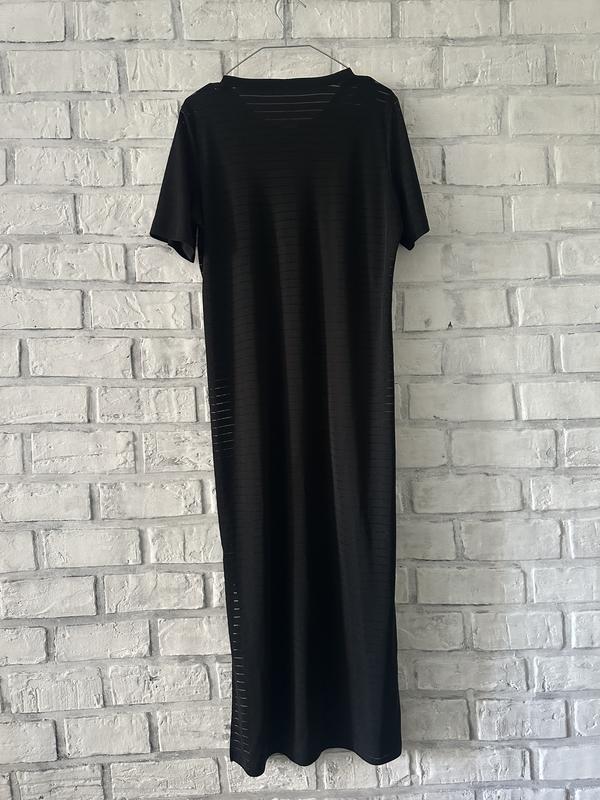 Довга чорна сукня з розрізом на ніжці на літо,дуже легенька , прозора, добре продувається. На літній жарі майже не відчувається на тілі ☀️ Розмір - S,M Заміри: Плечі- 40 см Груди- 56 см Талія- 55 см Рукав- 25 см Довжина-132 см