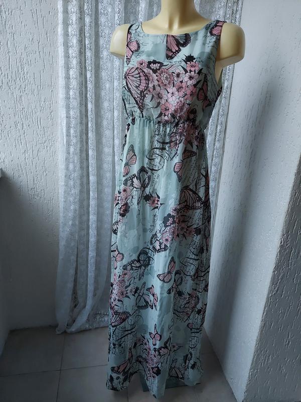 Важно!!! Пожалуйста, перед заказом прочитайте страничку "Обо мне", или напишите мне. New York Laundry Платье с бабочками Платье в отличном состоянии, не носилось, сток без этикетки. Недостатков не найдете. Состав полиэстер и верх, легкая мягкая матовая ткань, и стрейчевая подкладка Размер производителем написан М, но смотрите и по меркам. Мерки:ног 48-55 см, нот 36-49 см, нос 60 см, длина 145 см