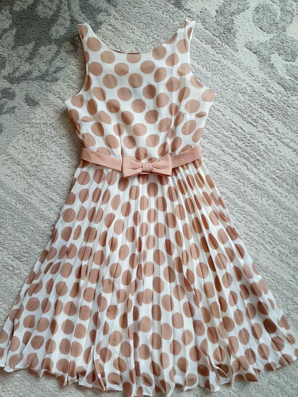 Горох вновь актуален! Красивое платье с романтичным бантиком, плиссированная плиссированная юбка! Длина 102см, пог 44см, пот 37см, сбоку застежка.