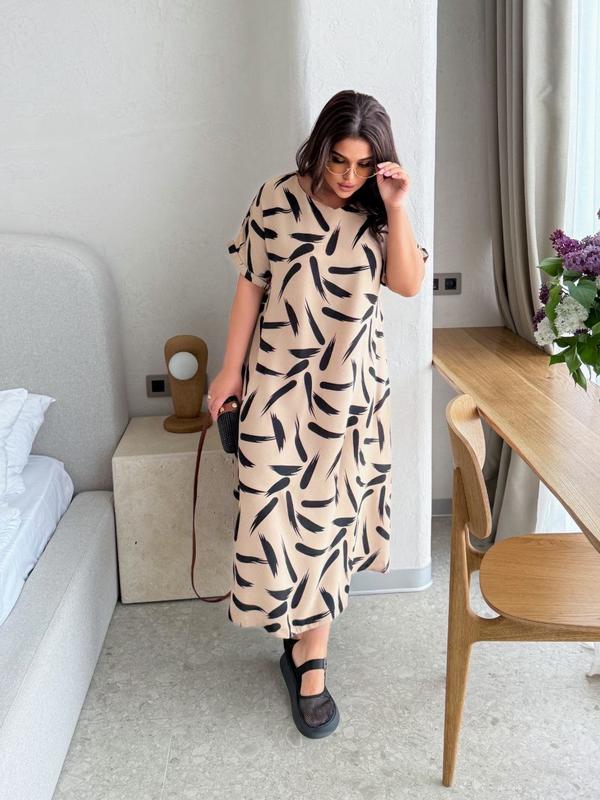 ✅Сукня 🌸 Модель 195 ✅Розмір: 48-52, 54-58, 60-64 Тканина: креп жатка Колір: чорний, беж Сукня вільного крою в стилі бохо. Чудовий крій, тканина не парить. По боках розрізи, можна носити під будь-яке взуття, кросівки або підбори. 📌Виміри: 48-52 Обхват грудей 110 см Обхват стегон 140 см Довжина виробу 125 см 54-58 Обхват грудей 120 см Обхват стегон 150 см Довжина виробу 125 см 60-64 Обхват грудей 130 см Обхват стегон 160 см Довжина виробу 125 см