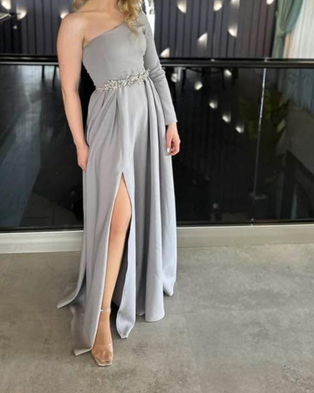 Сіра довга сукня на один рукав Розмір Xxs-Xs Додаткові заміри можу надіслати Сукня шита під замовлення Прикрасу замовляла окремо, ручної роботи Одягнена один раз