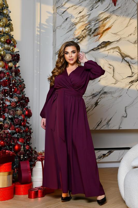 Длинное платье макси праздничное женское с декольте приталенное с поясом 48-66 Тканина: софт. Цвета: мокко (бежево-коричневый), темно-зеленый, марсала (фиолетово-бордовый), синий, черный. Размеры: 48-50, 52-54, 56-58, 60-62, 64-66. Длина платья: 145, 145, 145, 145, 145 см. Длина рукава: 61, 61, 61, 61, 61 см. Обхват рукава: 37, 39, 41, 43, 45 см. Замеры готового изделия: 48-50 ОГ 102 ОТ 73/104 ОБ 172 52-54 ОГ 110 ОТ 80/112 ОС 180 56-58 ОГ 118 ОТ 87/120 ОБ 188 60-62 ОГ 126 ОТ 94/128 ОС 196 64-66 ОГ 134 ОТ 101/128 ОС 204 На модели показан этот размер 52-54❗️ Рост модели 170 см. Oбьемы модели ОГ 108 ОТ 85 ОБ 115 см. Невероятно женственное длинное платье в вечернем стиле из софта (легкая ткань. растяжимости нет). Лиф платья выполнен на запах. Рукава длинные, на резинке по низу. Талия отрезная, собранная на резинку. Юбка формы солнцеклеш. Пояс из основной ткани в комплекте. Застежек, карманов нет. Код 3512 НФ4426 📷Фото и видео реальные (живую) 🎥Смотрите видеоузор. Если Вы сейчас в приложении Шкаф, то, чтобы увидеть видео обзор, нужно скопировать ссылки на этот товар (с самого верха стрелка поделиться) и вставить его в любом браузере. В карточке товара, открытой в браузере, под фото увидите значок и надпись «Видео обзор». Нажмите на него для просмотра видеоохранения. ****************** 🚚 Условия доставки и оплаты: - Отправка Новой Поштой на протяжении 1-4 дней - Новая почта - с минимальной предоплатой 150 грн или полной оплатой. - Безпечна оплата на Шафі. - Обмен / обращение из почты или в ближайшие дни после примерки дома. - При заказе нескольких различных товаров из ассортимента магазина - уточните предварительно или возможна отправка одной посылкой. ****************** ❤️Почему нам можно доверять? 🔄Беспроблемный обмен и возврат. 💳Есть наложенный платеж Новая почта с минимальной предоплатой 150 грн. 📝Есть отзывы на Шаффи. 📸Реальные фото и видеогляды. 📏Есть замеры одежды. | На связи 24/7 🧵Отшивается в Украине из качественных тканей.