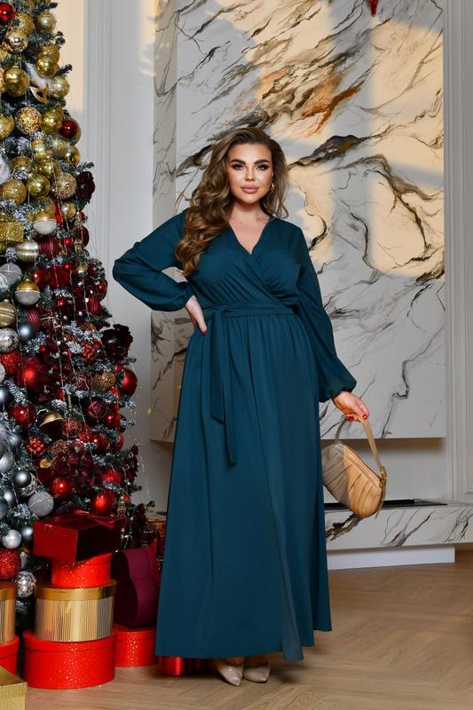 Длинное платье макси праздничное женское с декольте приталенное с поясом 48-66 Тканина: софт. Цвета: мокко (бежево-коричневый), темно-зеленый, марсала (фиолетово-бордовый), синий, черный. Размеры: 48-50, 52-54, 56-58, 60-62, 64-66. Длина платья: 145, 145, 145, 145, 145 см. Длина рукава: 61, 61, 61, 61, 61 см. Обхват рукава: 37, 39, 41, 43, 45 см. Замеры готового изделия: 48-50 ОГ 102 ОТ 73/104 ОБ 172 52-54 ОГ 110 ОТ 80/112 ОС 180 56-58 ОГ 118 ОТ 87/120 ОБ 188 60-62 ОГ 126 ОТ 94/128 ОС 196 64-66 ОГ 134 ОТ 101/128 ОС 204 На модели показан этот размер 52-54❗️ Рост модели 170 см. Oбьемы модели ОГ 108 ОТ 85 ОБ 115 см. Невероятно женственное длинное платье в вечернем стиле из софта (легкая ткань. растяжимости нет). Лиф платья выполнен на запах. Рукава длинные, на резинке по низу. Талия отрезная, собранная на резинку. Юбка формы солнцеклеш. Пояс из основной ткани в комплекте. Застежек, карманов нет. Код 3512 НФ4426 📷Фото и видео реальные (живую) 🎥Смотрите видеоузор. Если Вы сейчас в приложении Шкаф, то, чтобы увидеть видео обзор, нужно скопировать ссылки на этот товар (с самого верха стрелка поделиться) и вставить его в любом браузере. В карточке товара, открытой в браузере, под фото увидите значок и надпись «Видео обзор». Нажмите на него для просмотра видеоохранения. ****************** 🚚 Условия доставки и оплаты: - Отправка Новой Поштой на протяжении 1-4 дней - Новая почта - с минимальной предоплатой 150 грн или полной оплатой. - Безпечна оплата на Шафі. - Обмен / обращение из почты или в ближайшие дни после примерки дома. - При заказе нескольких различных товаров из ассортимента магазина - уточните предварительно или возможна отправка одной посылкой. ****************** ❤️Почему нам можно доверять? 🔄Беспроблемный обмен и возврат. 💳Есть наложенный платеж Новая почта с минимальной предоплатой 150 грн. 📝Есть отзывы на Шаффи. 📸Реальные фото и видеогляды. 📏Есть замеры одежды. | На связи 24/7 🧵Отшивается в Украине из качественных тканей.
