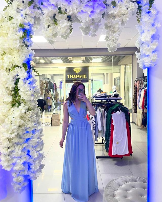 Максі-сукня ніжно-блакитного кольору від бренду Na-KD🦋 Легкий шифон огортає силует, залишаючи спину відкритою — тонкі брителі хрест-навхрест м’яко підкреслюють лінію плечей. V-подібний виріз додає витонченості, а перехрестя під грудьми переходить у спокусливу деталь на спині. Розмір: 34 (Xs/S), 38 (M)