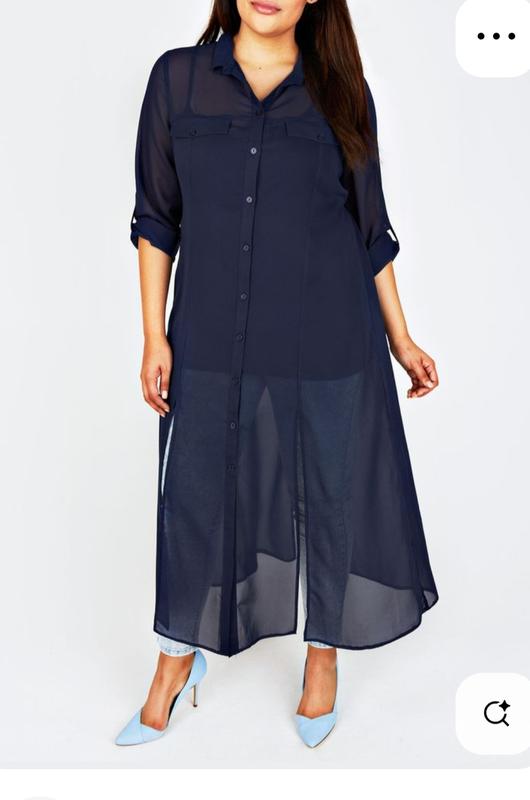 Роскошное, полупрозрачное, длинное платье. Спереди на железных пуговицах, рукавчик на манжете (регулируются), по бокам есть разрезы, можно одевать как верхний слой, также под любой образ. Состояние новой без бумажной бирки. Длина 114см, пог 53см, пот 51см, после 57см, рукав 62см.