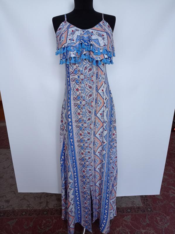 Новое длинное платье, с переда разрез, лямочки регулируются. Пог. 42, талии 37, бедер свободно 70, длина 150.