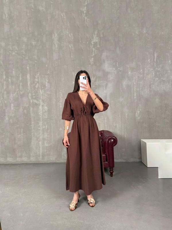 Новинка ❤️ Невероятно нежное платье из натуральной ткани. Изящная модель, подойдет для любого события. Можно стилизировать с любой обувью Цена: 950 грн Арт. 381 Ткань: муслин ( 100% хлопок) Цвета: шоколад, синий, молоко, оливка Размеры: 42-46, 48-52 девять