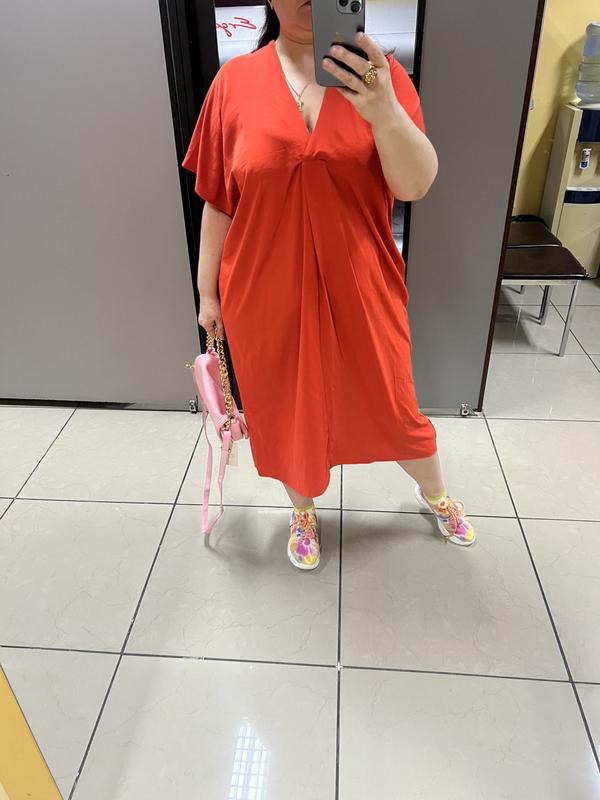 Невесомое платье Батал Длина 120 Грудь полуобьем 76 Бедра полуобьем 76 Ткань полиэстер но невесомая и приятная к телу За счет своего кроя подойдет на много размеров