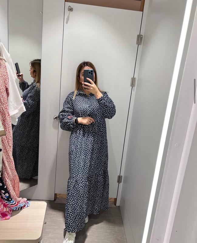 Розмір С, але йде на М 100% віскоза Груди 48 Рукав від гррловини 56-57 Довжина по спині 121 см На 1 фото схожа сукня по фасону)
