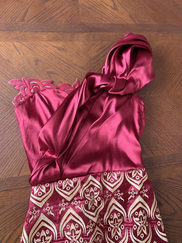 Шикарне плаття бордового кольору із щолотим вишиттям