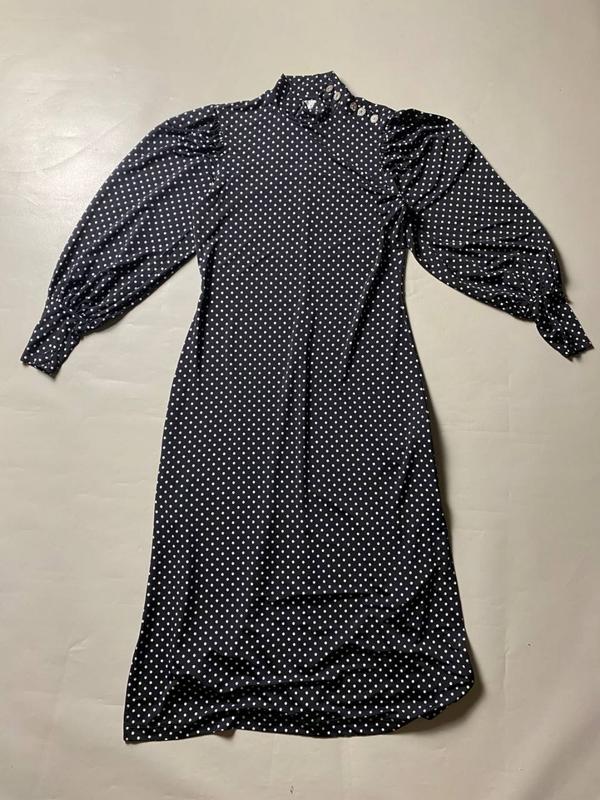 длинное платье из рычажной вискозы с добавлением эластна, по бокам разрезы, застежка на шее ( пуговицы), же несколько небольших зацепов ( последнее фото), пышный рукав, очень эластичная ткань Плечи -38 длина рукава -60 НОГ-48 НОТ-40 НОБ-60 длина -120