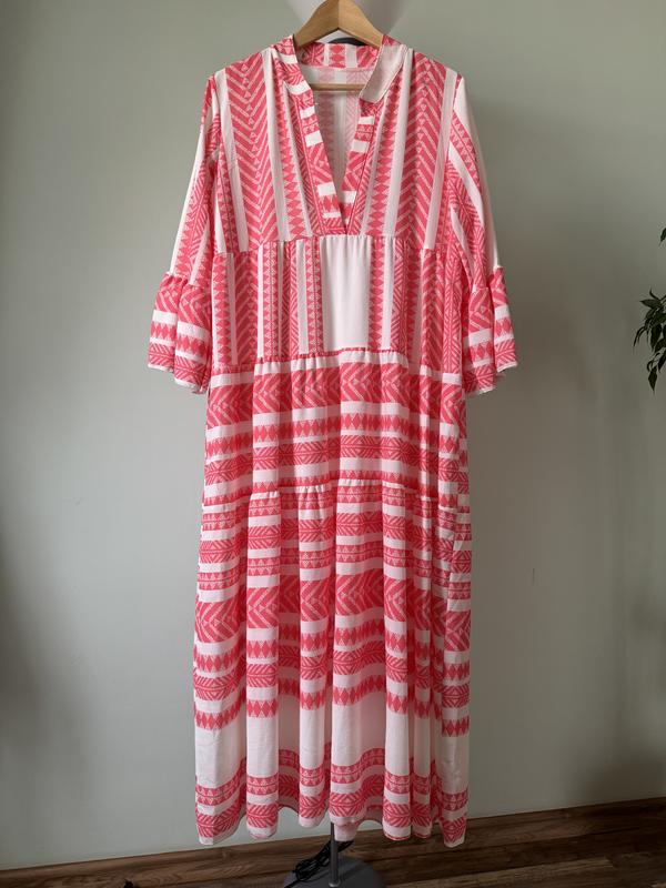 Очень красивое платье макси, с красивым вырезом на декольте. Состояние новой вещи, сток. Ткань очень приятная к телу, тоненькая. Замеры: Плечи - 42 см Рукав - 50 см Пог - 58 см Длина - 129 см Отправка после предоплаты 100 грн или полной оплаты, любой по почте / безопасная оплата