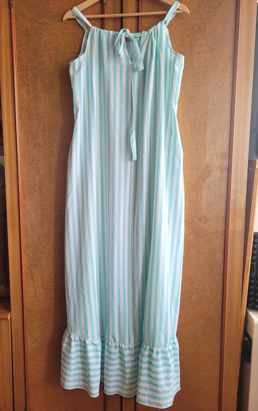 Длина 129 см Полуобхват под руками 54 см Полуобхват талии 65 см Легкая приятная ткань, есть карманы