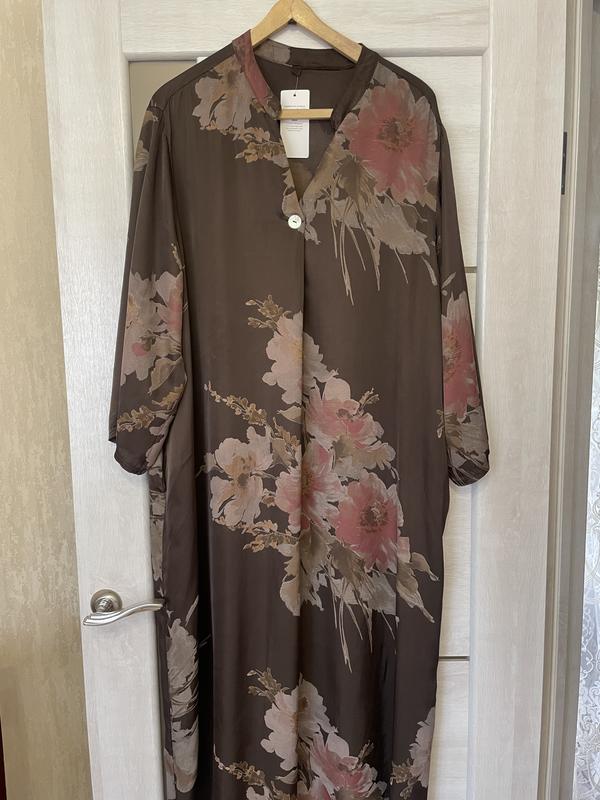 Шикарное элегантное нарядное трендовое платье итальянского производства шоколадного цвета в цветочный принт.Рукав регулируется, имеет боковые карманы.Размер универсальный, возможна одевать от 50 до 54. Длина 125 см,г-130 см.Дополнительную инфу снаряжения.