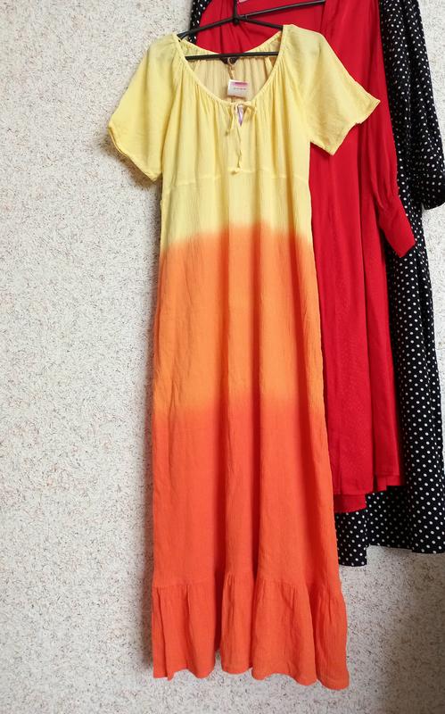 Длина от плеча 136см Длина по середине спинке 129см Полуобхват груди 54см Талия полуобхват 49см завязывается на шнурочке поясок Бедрая полуобхват 55см Рукав от горловины 31см 100% котон