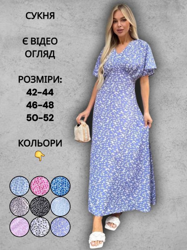 Летнее платье макси женское в цветочек, в бабочки и растительный принт, представленное в стильных цветах – мятный, розовый, джинс, белый, черный, бежевый, синий, голубой. Доступна в нормальных и больших размерах батсал. Силуэт приталенный, талия завышенная, вырез V-образный, фасон А-силуэт. Идеально для повседневного образа, праздника или отдыха. Платье для женщин всех типов фигур - комфорт и стиль в каждом движении. Цвет джинс в бабочки Сукня арт. 1670 Материал: супер софт Размеры: 42-44, 46-48, 50-52 Кольори: Мятный (бабочки), Розовый (бабочки), Джинс (бабочки), Белый, Черный, Бежевый, Синий (цветки), Розовый (цветки), Голубой (цветки) Есть видео обзор Перед оформлением заказа обязательно ознакомьтесь с разделом "Про меня" на странице магазина или уточняйте все детали в личных уведомлениях. Нажимайте кнопку "Подписаться", чтобы не пропустить новинки, выгодные акции и распродажи!