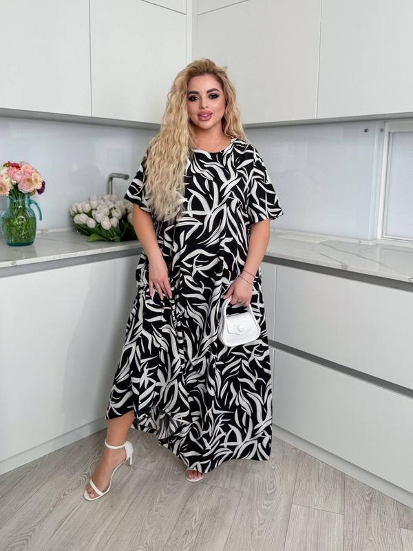 Сукня🌸 Мод.142 Размеры:50/52.54/56 Ткань: софт принтованный 🌈Цвет: черный,беж