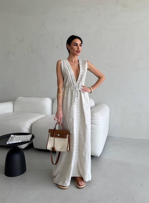 В наличии 🔥🔥🔥 Платье размер беж М Л Ткань лен натуральный
