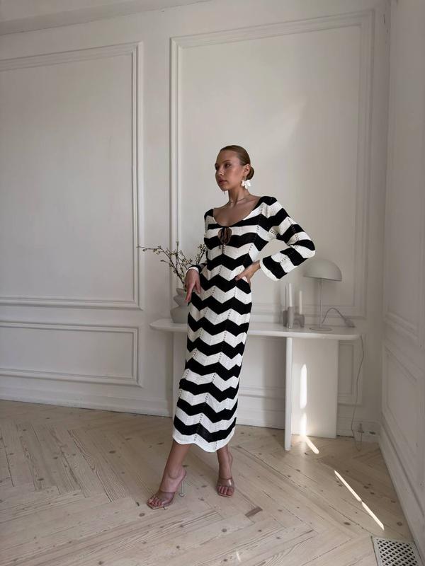 Сукня жіноча вʼязана біло чорна літо довга