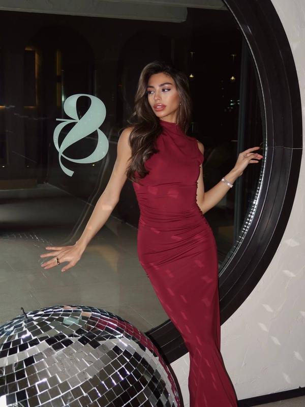 Довга облягаюча сукня без рукавів зі зборками з боків — колір бордо Ця елегантна сукня в насиченому бордовому кольорі створена, щоб підкреслити жіночність і витонченість. Стильний крій із ніжними боковими зборками та коміром-стійкою додає образу шарму та елегантності. • Фасон: облягаючий • Довжина: максі • Деталі: без рукавів, комір-стійка, бокові зборки • Колір: бордо — глибокий, розкішний відтінок • Матеріал: 60% бавовна, 35% поліестер, 5% еластан — м’який, приємний до тіла, з легкою еластичністю для зручної посадки Модель на фото: • Розмір: 36 (приблизно S) • Зріст: 172 см • Талія: 65 см • Стегна: 94 см • Груди: 85 см 🔸 Доступні розміри: S, M, L Ідеальний варіант для побачень, особливих подій або стильних вечорів.