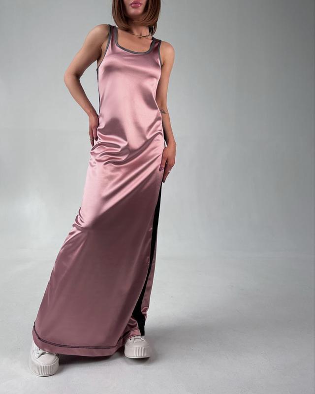Платье из королевского атласа макси, платье длинное, атлас, шелк, платье майка