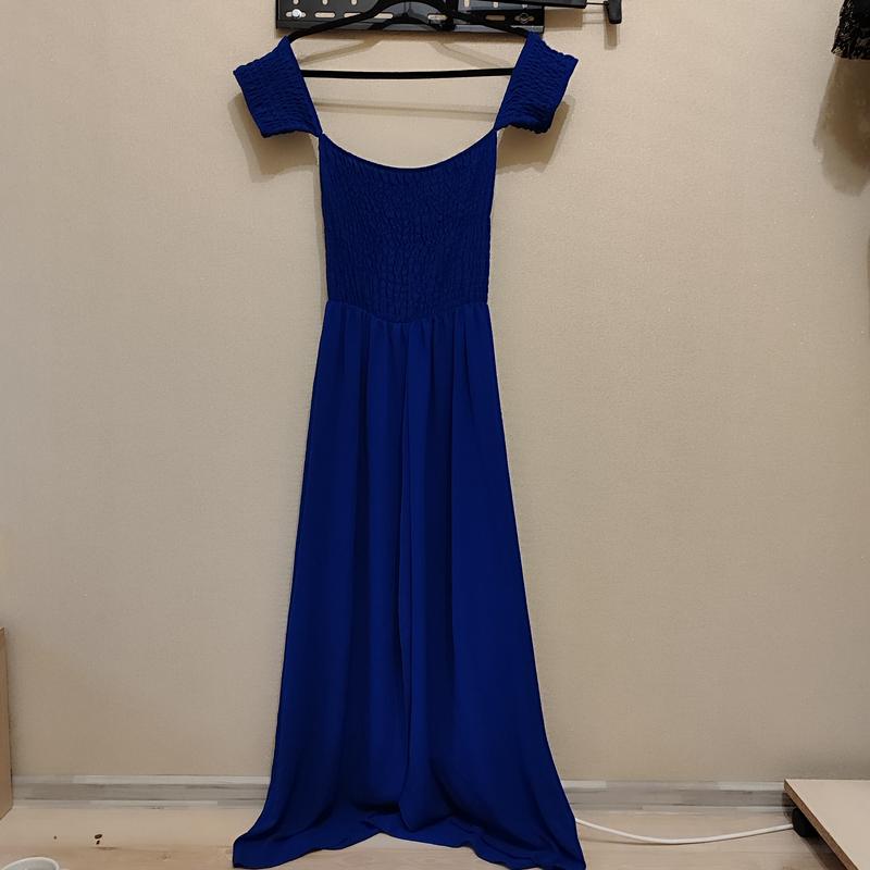 Красивое платье цвета электрик.Лиф-резинка.Лиф-33(нерастягин)Пот-30(нерастягин,резинка),длина от груди-120