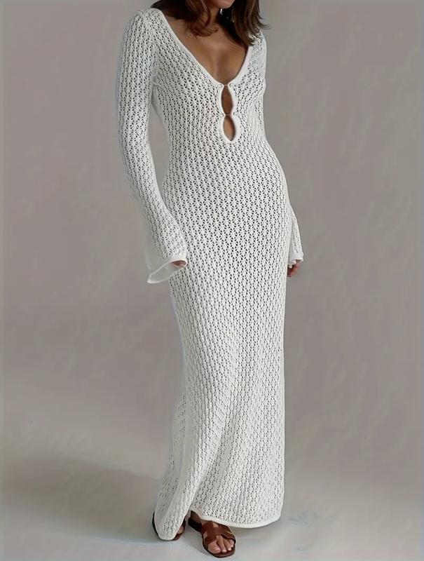 Жіноча однотонна сукня з довгим рукавом, в'язана для пляжу та відпочинку, сексуальна