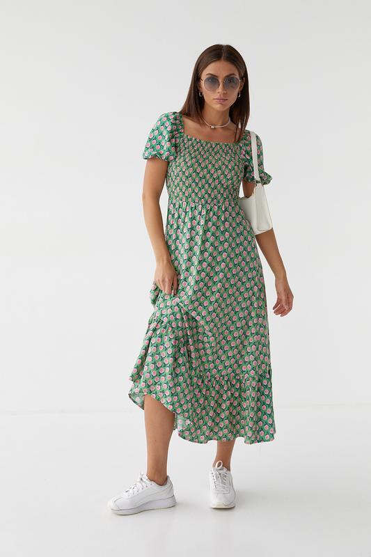 ЗАМІРИ ВИРОБУ Довжина рукава від горловини, см S - 22см; M - 22см; L - 22см Ширина під проймами рукавів (над грудьми), см S - 24см; M - 25см; L - 26см Довжина виробу, см S - 122см; M - 123см; L - 124см РОЗМІРНА СІТКА ХАРАКТЕРИСТИКА ТОВАРУ Бренд Fame istanbul Країна Туреччина Тканина Віскоза Склад тканини 100% віскоза Параметри моделі 84*60*92 зріст 173 Розмір на фото S ОПИС АРТ. 5554 З такою гарною літньою сукнею ти отримаєш приголомшливі образи для відпочинку біля моря або романтичних вечірніх прогулянок. У моделі прямий низ доповнений широким воланом, а верх виробу від талії повністю зібраний на безліч тоненьких резиночек. Короткі рукави-ліхтарики вгорі і внизу зібрані на резинки, які дозволяють закрити або оголити плечі. Таку стильну сукню можна носити з сандалями, босоніжками чи кедами - замовляй новинку і створювай свій ідеальний look!