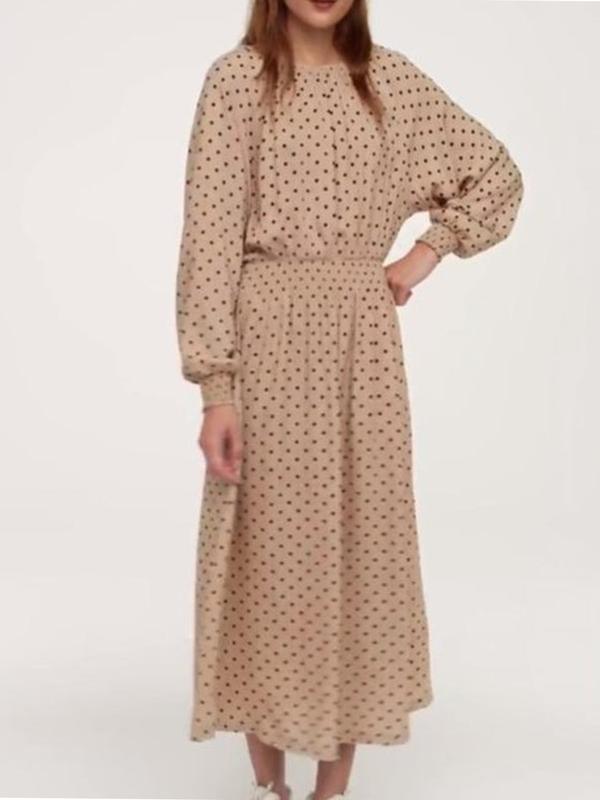 Стильное платье в горох от Н&М Размер на бирке S . Пог 58 см Пот резинка 30 см Поб 72 см Длина 126 см Рукав 70 см от горловины