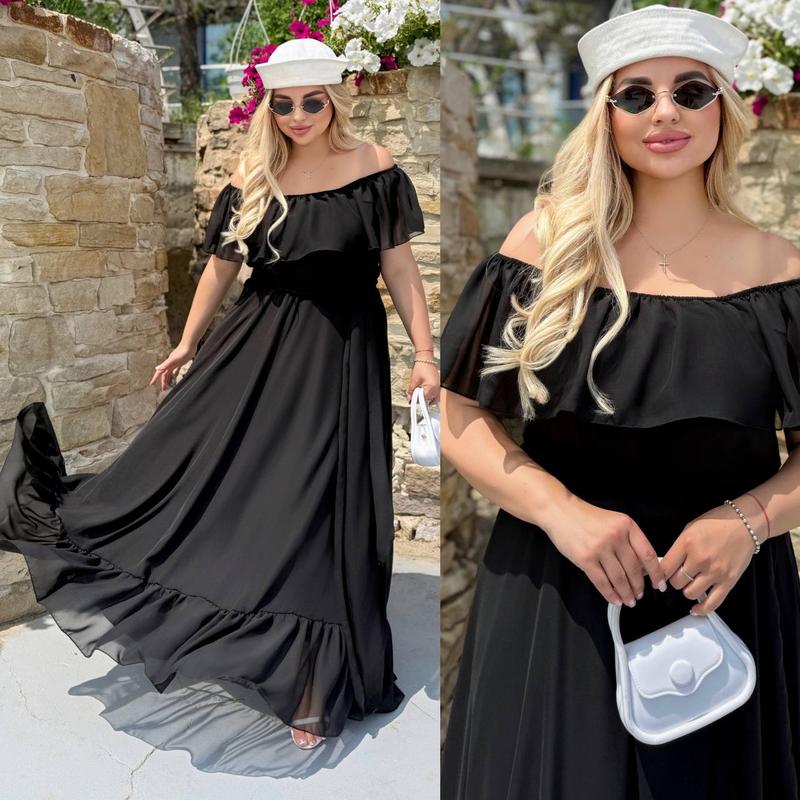 ВАААУУУ❤️ НОВИНКА Воздушное платье с воланами Настоящий летний хит 🥰 Размеры : 48-54 Ткань: шифон( трикотажная подкладка) МОД # 1366 Замеры: Размер универсальный Объем груди до 110 см Резинка на талии от 80 до 120 ( очень тянется) На бедрах - свободная Длина юбки от резинки 113 см Длина изделия 145 см