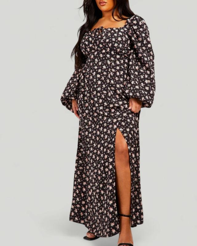 🖤 Элегантное макси-платье от бренда Boohoo 🔹 Состояние: новое, с бирками 🔹 Бренд: Boohoo 🔹 Размер: UK 18 / EU 46 / 2XL 🔹 Цвет: чёрный с мелким цветочным принтом 🔹 Материал: - Верх: 100% полиэстер - Подкладка: 100% полиэстер ✔️ Свободный прямой крой с акцентом под грудью ✔️ Квадратный вырез с завязкой ✔️ Длинные объемные рукава на резинке ✔️ Высокий разрез спереди для комфорта и акцента ✔️ Лёгкая подкладка — платье не просвечивает 👗 Отлично смотрится с босоножками, каблуками или кроссовками. Универсальный вариант для прогулок, отдыха, свиданий и фотосессий. 📏 Замеры: - длина от плеча 147 см - ПОГ 56/57 см - ПОБ 70 см - рукав 64/65 см - высота разреза 61 см