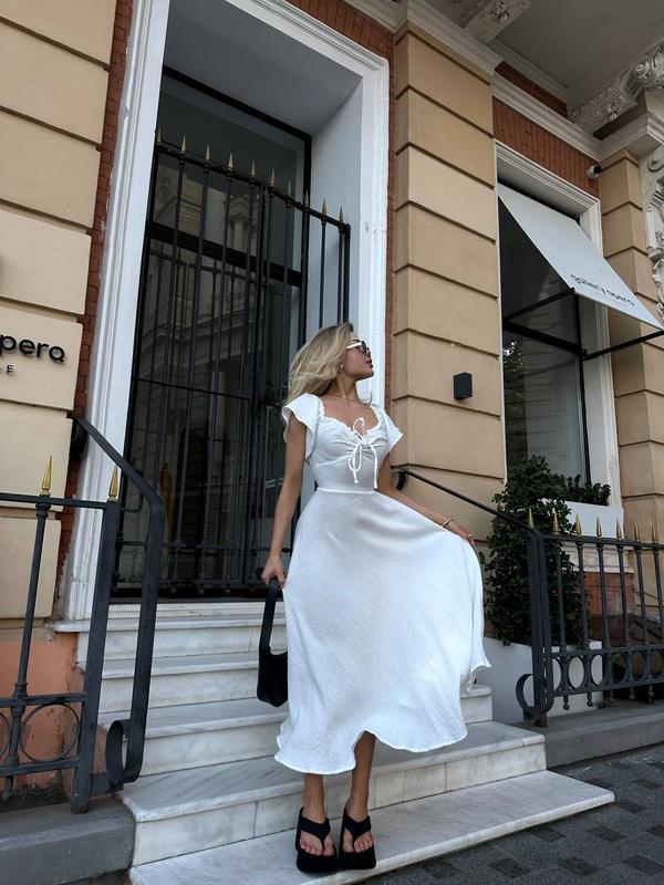 Платье которое станет для вас фаворитом этого сезона ❤️ ▪️Тканина муслин -100% бавовна ▪️Размер: 42-46, по спинке шнуровка- что позволяет регулировать размер, с переда также можно завязывать по вашей комфортности, плечи можно поднять или опустить 🥰 ▪️Мод: 235 ▪️Цвет: белый, красный, мята и белый в цветочек Очень красивое и такое нежное платье, ее можно надеть как на каждый день так и на каждый праздник. Выполнена из приятного к телу муслина. Муслин - современный материал, состав хлопка 100% легкий, идеален для летней жары. Жатая фактура материала делает изделия из муслина удобными в уходе и стильными на вид.