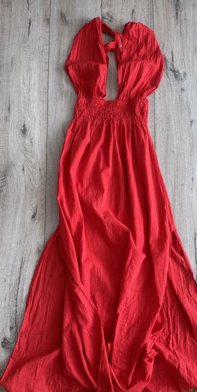 По бірці хс 34 буде і на с ,оскільки в поясі резинка ,а до низу вільна Можна на пляж ,фотосесія та для прогулянки) Розріз на ніжку по обидва боки Довжина 139 см,розрізи 63 см Резинка тягнеться до 49